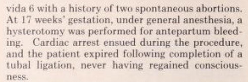 Later research found that the risk of hysterotomy abortion concurrent with surgical sterilization was unjustified even in someone perfectly healthy. Today, medical knowledge has advanced beyond the antiquated approach of abortion for pregnancy complications— the recommendation that failed Dottie and her child.